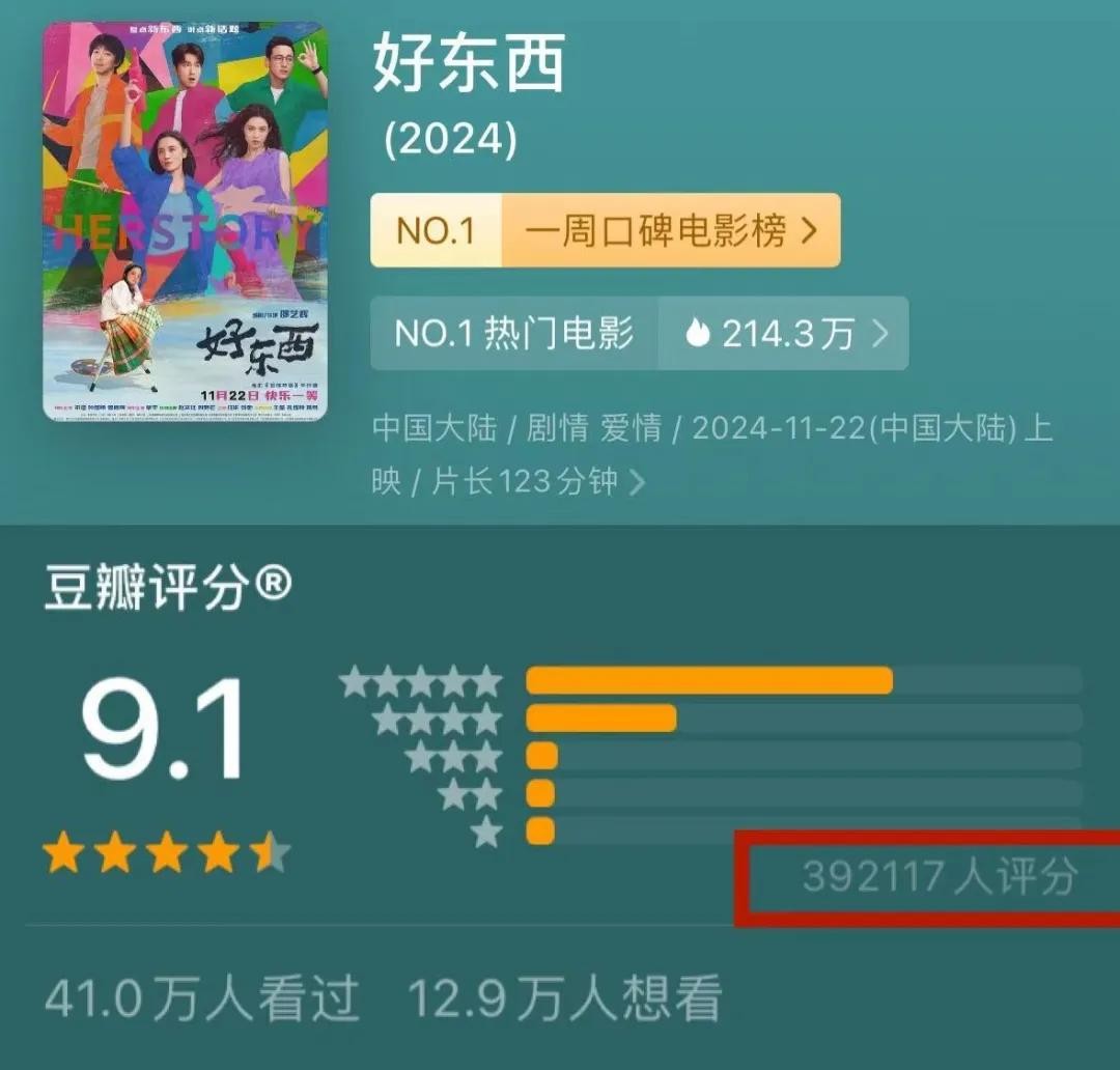 再到近日有39万人参与打分豆瓣评分为9.1的《好东西》,