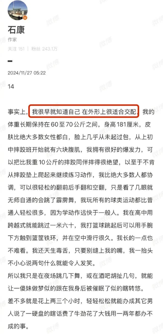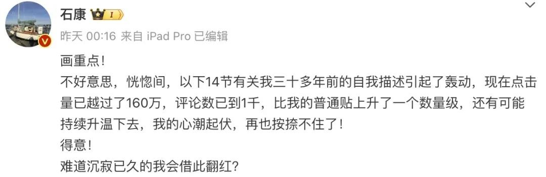 但更令人讶异的是即使这溢出屏幕的腐朽与狂妄遭到群嘲,也没有影响到石康的分毫自信。
