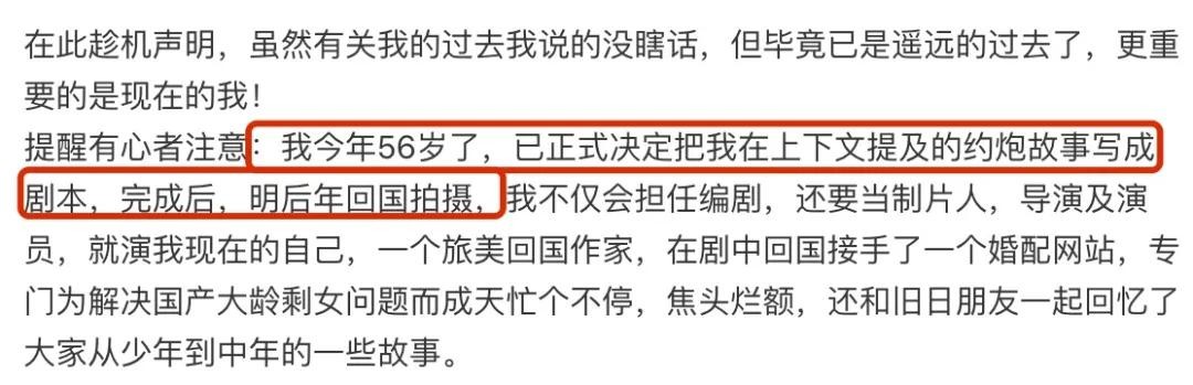扬言要将自己的约炮故事写成剧本,自编自导自演。