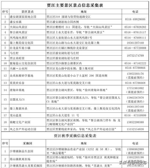 小编整理了贾汪主要景区景点的联系方式