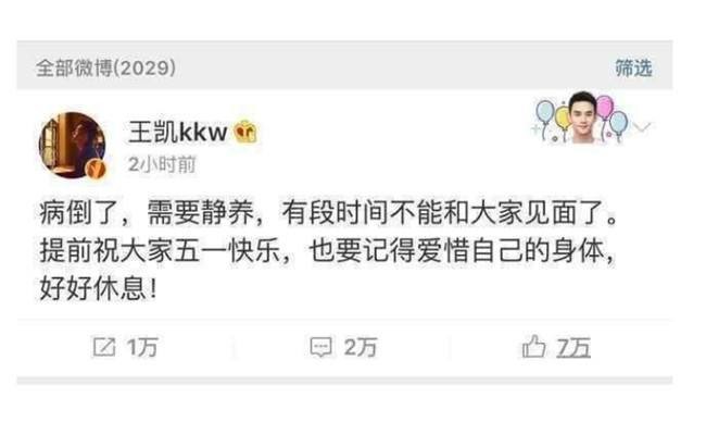 在生病期间,他在新浪微博上告知粉丝需要好好休息,但没有透露更多细节。