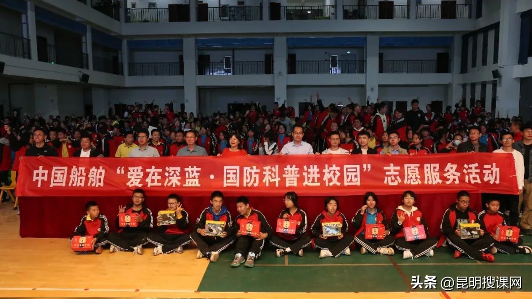 10月20日,中国船舶705所昆明分部和昆十四中联合开展“爱在深蓝——国防科技进校园”国防教育主题课,昆十四中初二年级全体师生在体育馆参加本次国防教育主题课。