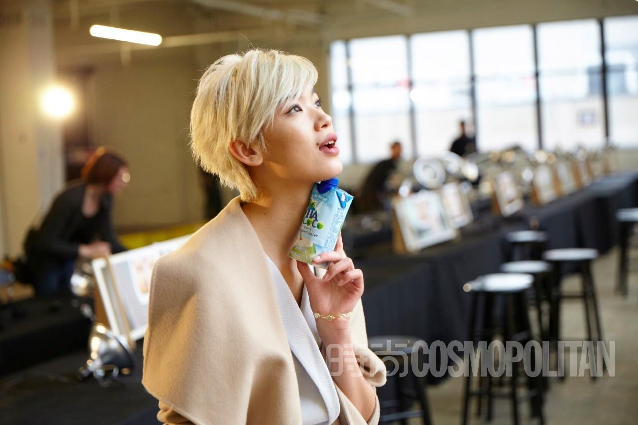 这么多紧凑的行程下来,Kiki一直能够保持很充沛的精神状态,在时装周后台休息化妆时,她说:“自己平时就很注重保持肌肤水润度,由于经常熬夜、出国,所以为肌肤补水是最在意的地方。”比起普通的水和其他饮料来说,天然椰子水更能迅速渗透到细胞中,为肌肤充盈能量,随身携带的Vita Coco天然椰子水此刻起到了关键作用。