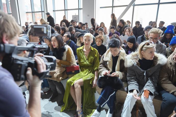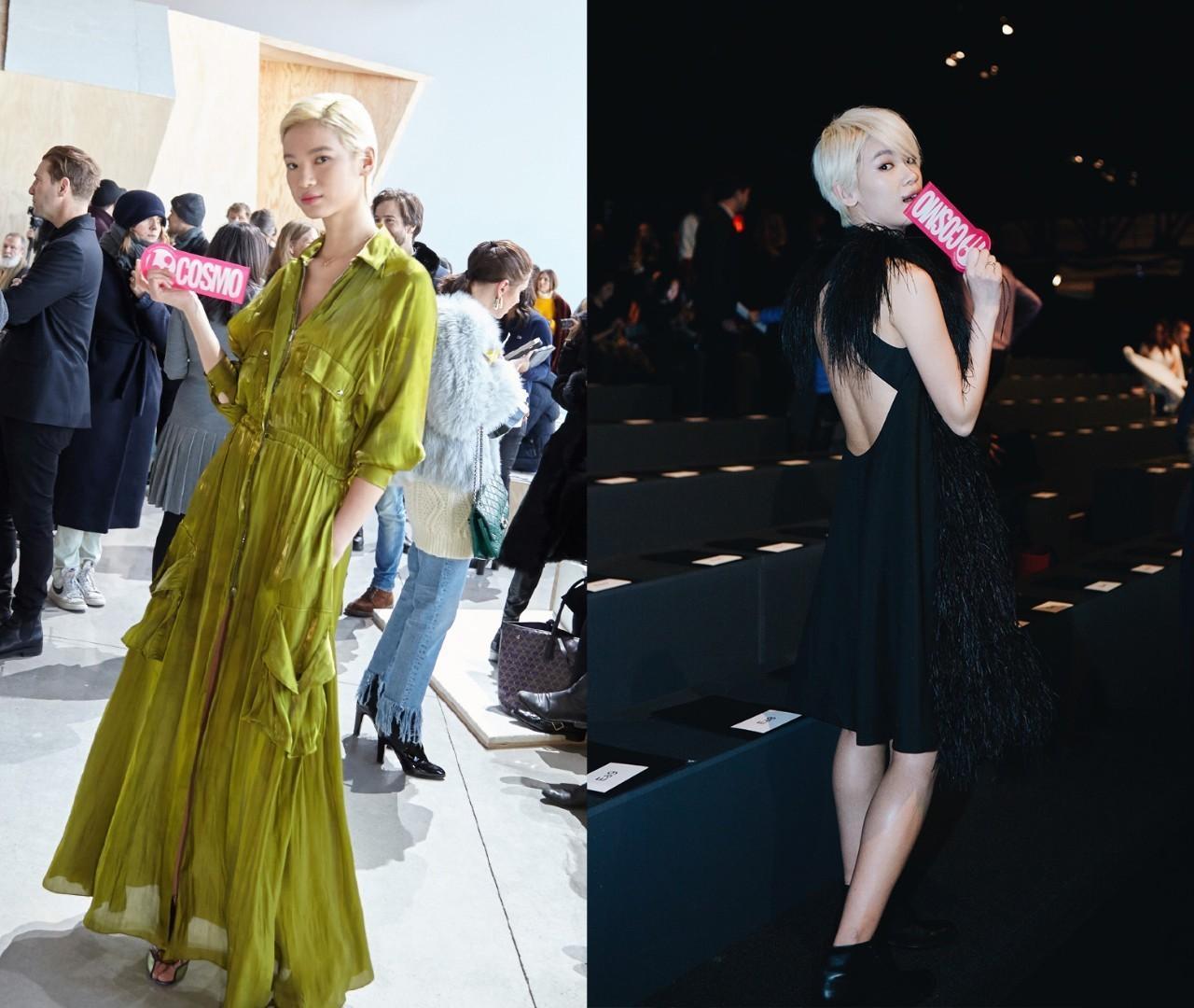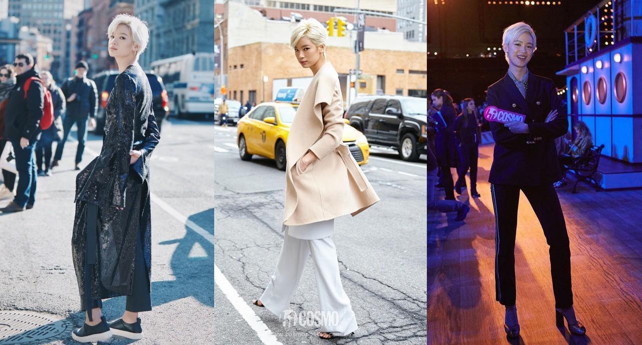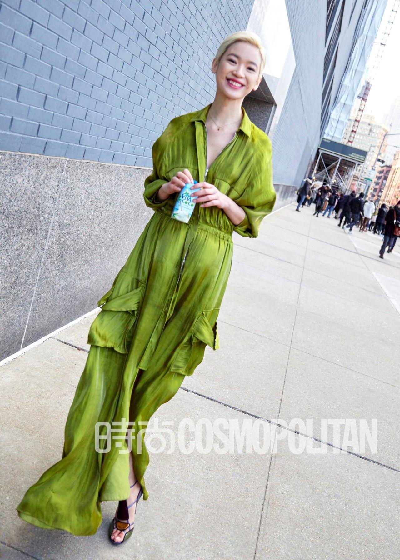 到了纽约,Kiki作为超模的专业又展现的一览无余。秀场内外随处可见各种时尚ICON,而Kiki带着她东方超模特有的神韵,自然也成为了纽约秀场和街头独一无二的一道风景。穿裤装的她利落帅气,一头金色短发显得格外瞩目。