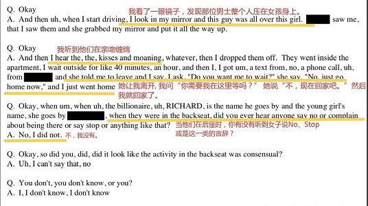 刘强东还告诉警方,“我敢说她比我更主动,更愿意和我发生性关系。”她同时说道:“她脱掉了我的衬衫。”
