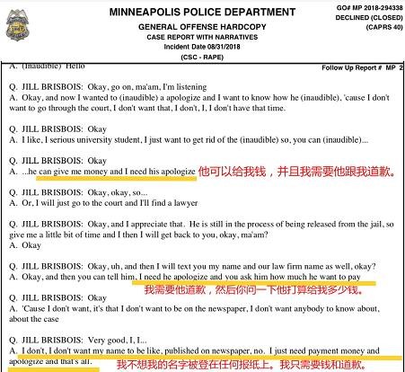 明尼阿波利斯市警察局于当地时间7月24日公布了一份长达149页的PDF版刘强东性侵案证据。内容包括对刘强东等相关人士以及目击者的采访笔录,以及未曝光的警方审讯刘强东的录音带。