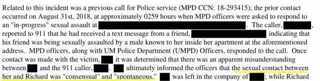 当时,这名女子回答说:“我被强奸了,但不是这个意义上的。”该警官随后警告该女子,强奸在美国是非常严重的事件,如果发生任何事情,警方将尽力帮助她。该女子表示,她不想让警察采取任何行动。