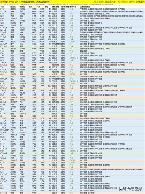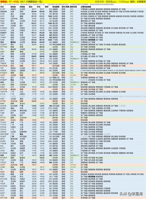 文末附图:邯郸站及邯郸东站2024.1.10图定日常线周末线车次时刻表