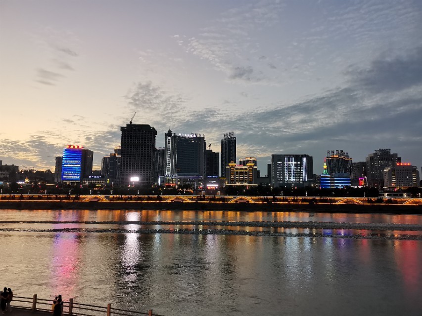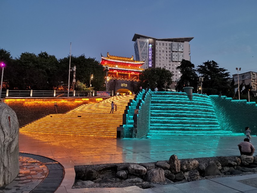 晚饭后,我们去到汉江边游览,这里是政府重点打造的市民活动场所,灯光绚丽璀璨,宽阔的步道把多个广场串连,错落有致,互不打扰。凉风习习的傍晚,来这里休闲的市民非常多,有散步的、唱歌的、跳舞的、钓鱼的、游泳的,个个悠然自得。