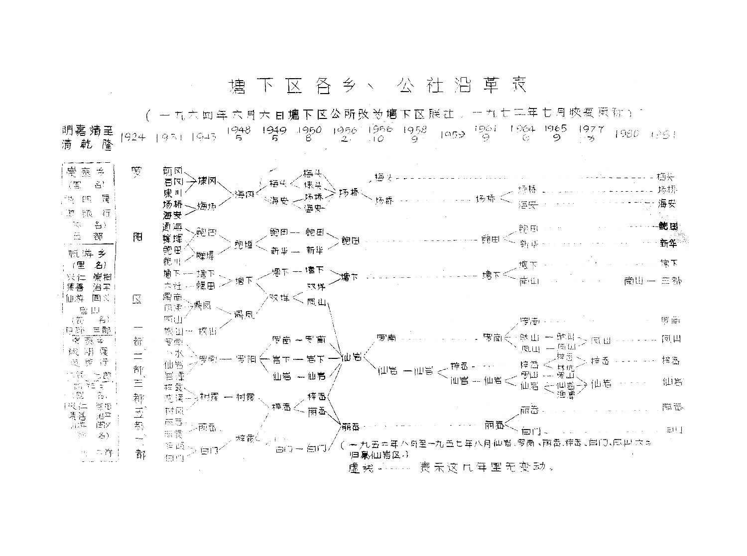 1949年8月,塘下区辖10镇,分别为塘下, 新华, 鲍田, 海安, 梅头, 罗南, 仙岩, 白门, 梓岙, 双垟。 1958年10月 塘下区辖,塘下 鲍田 场桥 梅头 罗南 仙岩 丽岙,1961年9月塘下区辖,塘下 鲍田 场桥 梅头 罗南 仙岩 丽岙 梓岙。1985年,塘下区辖塘下镇 白门乡 丽岙镇 梓岙乡 仙岩镇 凤山乡 罗南乡 海安乡 场桥镇 梅头镇 三都乡 鲍田乡 新华乡,驻地邵宅村,1992年,撤销区公所,实行县辖镇体制,塘下区撤销。