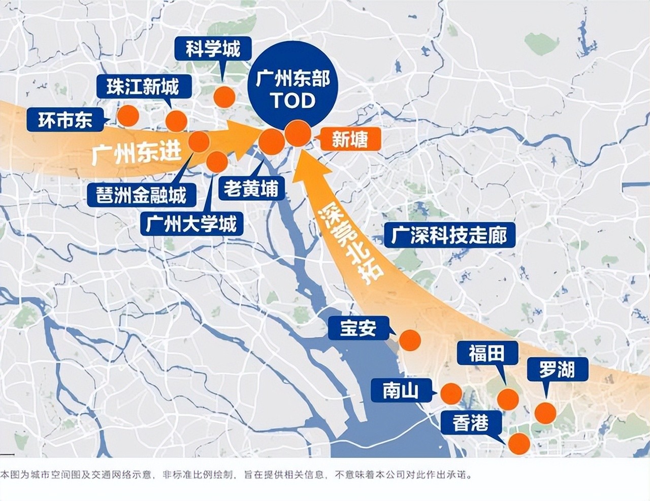 所以,新塘,作为广州市城市空间"东进"拓展轴和综合交通网络上的重要节点,发展趋势是显而易见的。东部门户的超级枢纽在此落地,是跨越式的进步。