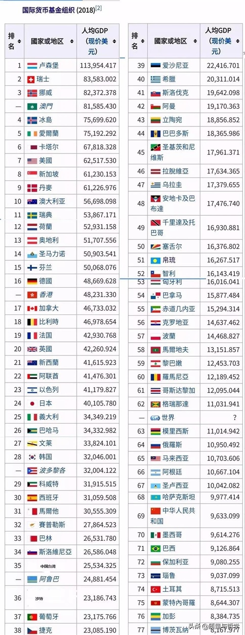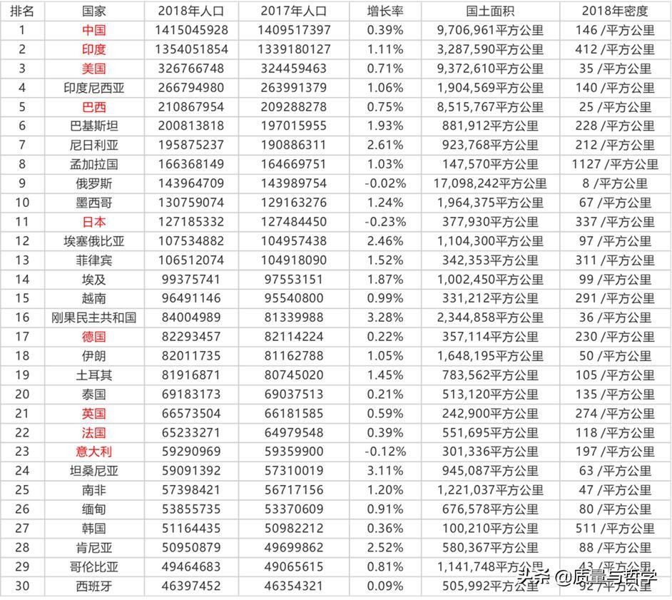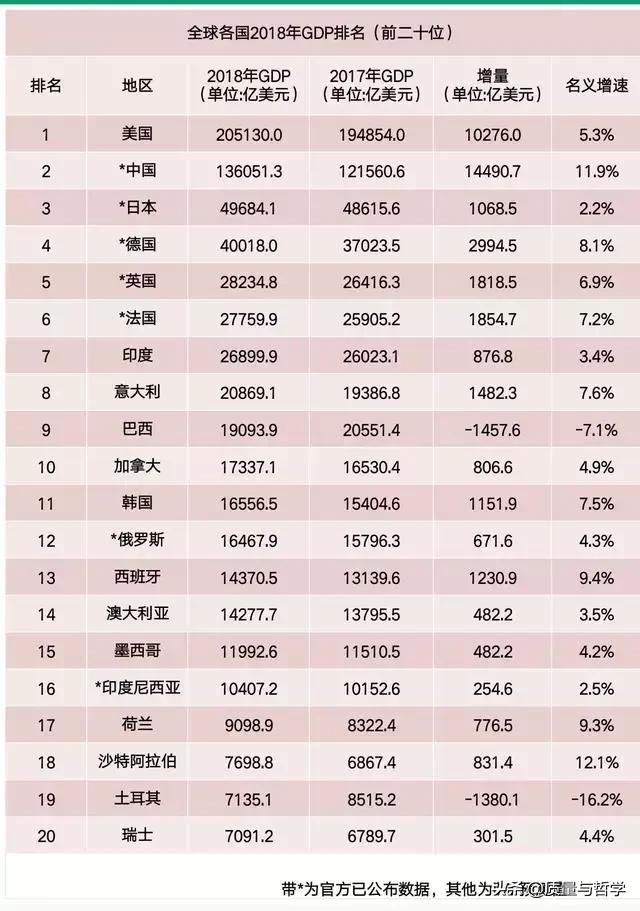 2018年全球GDP排名出炉,国家富强程度=人口质量*人口数量