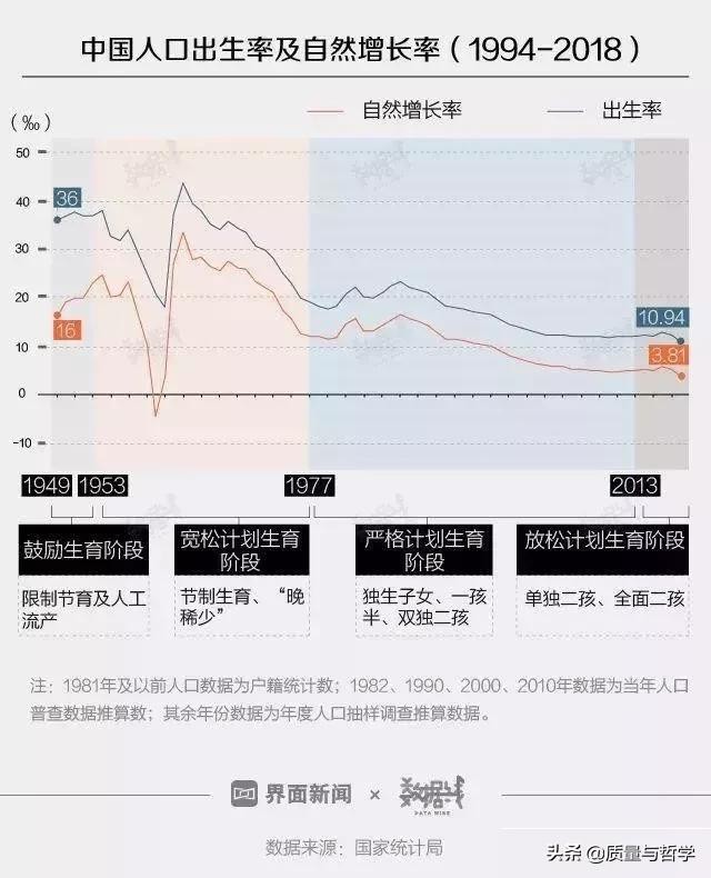 国家统计局:2018年末中国大陆总人口139538万人,比上年末增加530万人。全年人口出生率为10.94‰;自然增长率为3.81‰,为1949年以来最低。