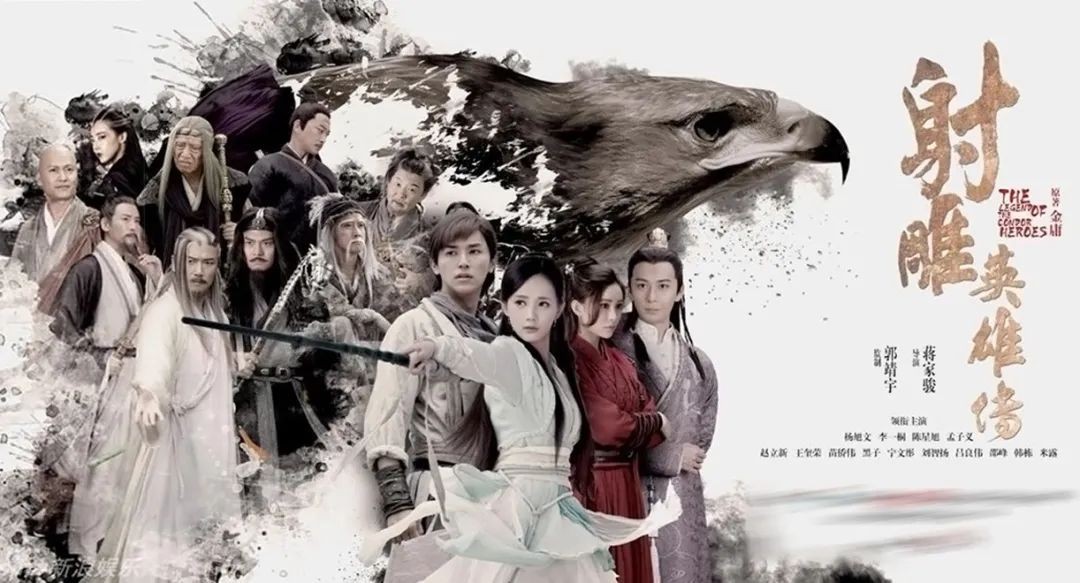 《射雕英雄传》最初连载于1957~1959年的《香港商报》,第一部电影《射雕英雄传》却在1958年就上映了,是第一部金庸武侠影视作品;当时书还没写完,电影已经出来了,也是一段经典的传奇。