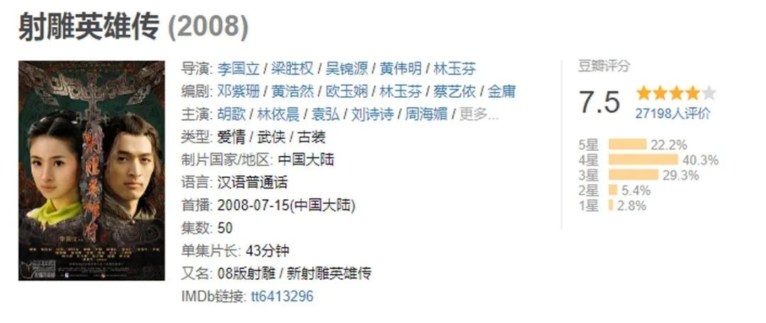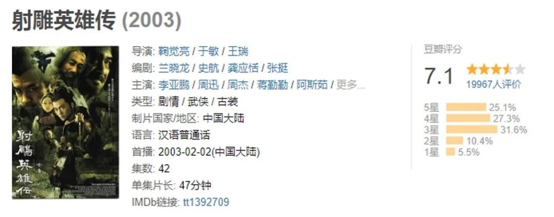 这一版因为胡歌的影响力,当年的收视成绩也不错,可惜改编得太过了,生生拍成了武侠偶像剧。