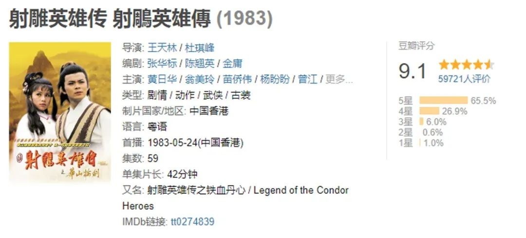 《射雕英雄传》是金庸先生的武侠小说中的经典,其改编的电视剧已有7部之多,但真正称得上公认的经典,大概只有83年黄日华翁美玲的版本。