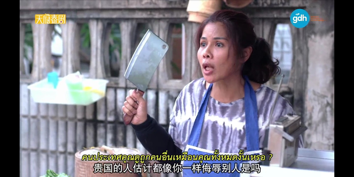 两个前来泰国旅游女人嫌弃路边摊,鄙视当地人,欺负听不懂外语口无遮拦,老板娘菜刀一架,对飚法语,两女人落荒而逃。