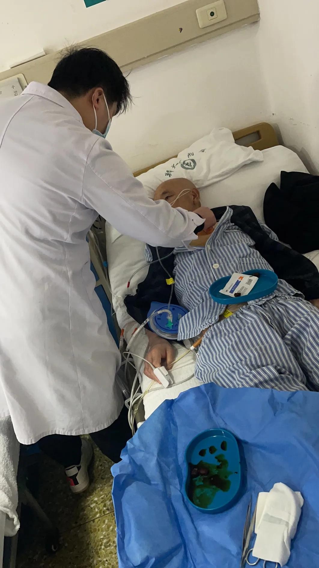 第一次来郑大一附院(河医院区),生平第一次见到这么大的医院,偌大的院区矗立一栋栋的高楼大厦,楼间距足有上百米,人是来来往往,人山人海,打了何主任电话后找到他所在的病房楼下,跟父亲倆等了快一个小时,终于见到了这个医术高超的医生。手术时间是1月3日,早上9点进手术室,下午6点出来,何主任把切下来的食管拿到谈话窗口,跟我说手术非常成功,时间长是因为器官黏膜剥离多占用了2小时,好吧,不管怎样总算手术成功了。剩下就是好好恢复,一般顺利的话10-15天吻合口就能长好了,恢复期间需要走路、咳嗽和吹气球,父亲特别虚弱,咳嗽和吹气球表现不好,冒着风险3000块一次的吸痰手术做了2次才会咳嗽和吹气球,术后第3天看着快要步入恢复的正轨了,姐姐也从广东那边过来帮忙照顾父亲,可是术后第9天他突然发高烧了(伤口感染的征兆)。