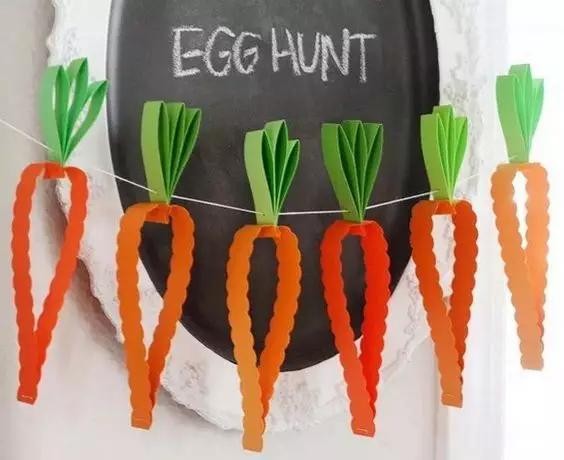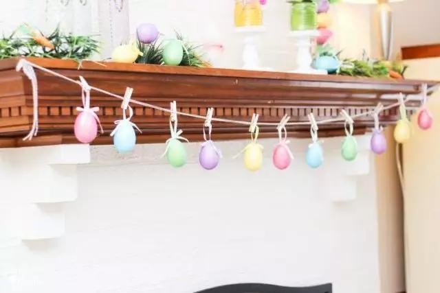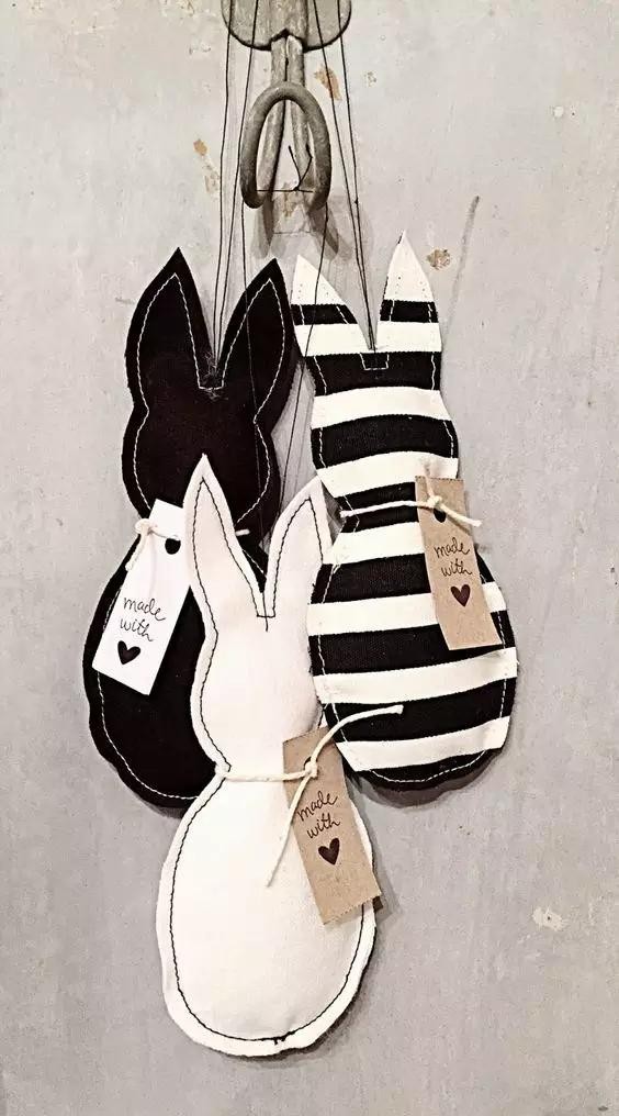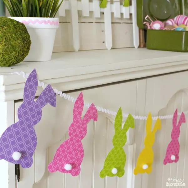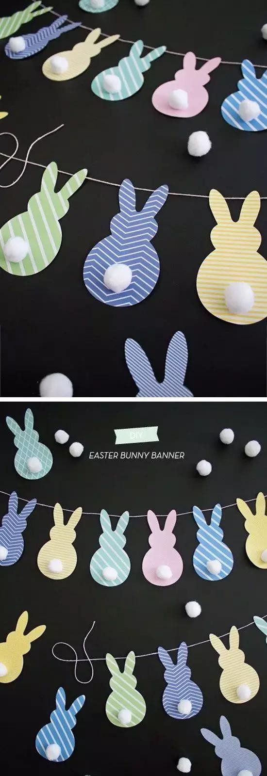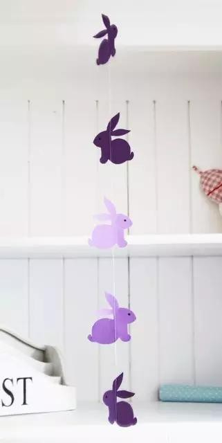 3.最后,将小兔子的耳朵黏/穿在绳子上吧