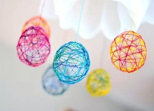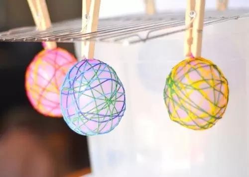 1.先吹一个小气球,毛线粘上固定形状的胶水或浆料后缠绕在小气球上,剩下的就是一个等毛线干的过程。