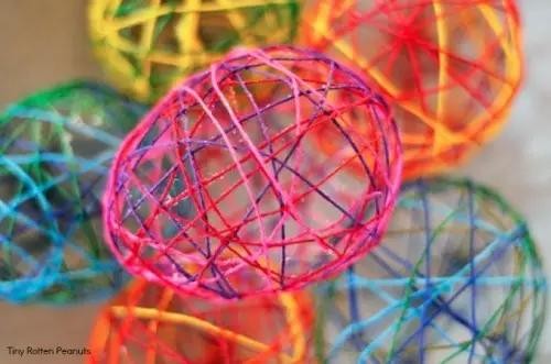 2.之后,用牙签或针戳破小气球,留下硬化的毛线