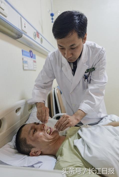5年前,郁铮控制嘴巴张合的关节也完全打不开了。只能通过料理机,把食物打碎后,像喝汤一样灌进去。父母在他幼年就不幸离世,他由叔叔抚养,这次来汉手术,是由堂弟陪同。郁铮希望以后能自己“吃”上饭。