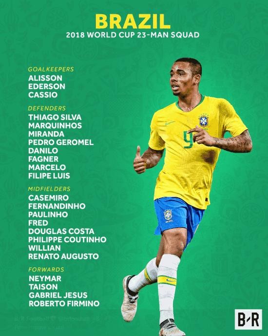内马尔领衔!巴西公布世界杯23人大名单,两中超元素或入首发11人