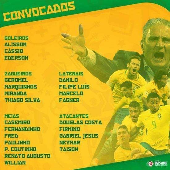 北京时间5月15日凌晨,巴西主帅蒂特公布了2018年俄罗斯世界杯的23人大名单。绝对核心内马尔领衔,库蒂尼奥、威廉、马塞洛、蒂亚戈·席尔瓦等名将悉数在列,其中也不乏保利尼奥和奥古斯托这两位和中超千丝万缕联系的球星。