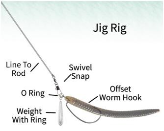 6、足球头软虫钓组(Football Worm Rig、Shaky Head Rig)。