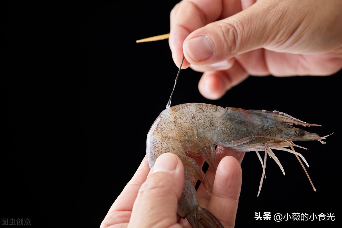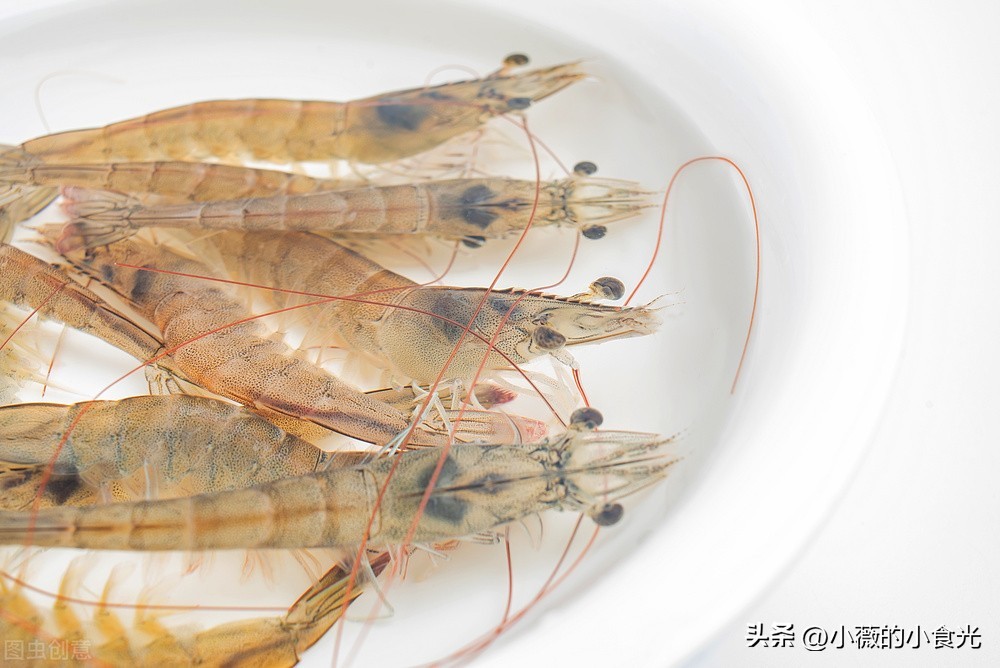 新鲜的大虾洗净,挑去虾线,剪掉虾枪