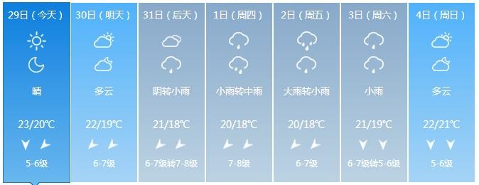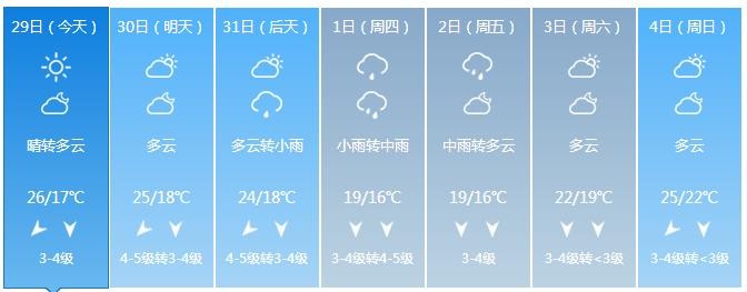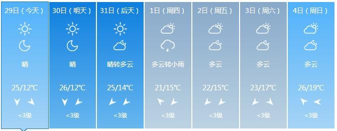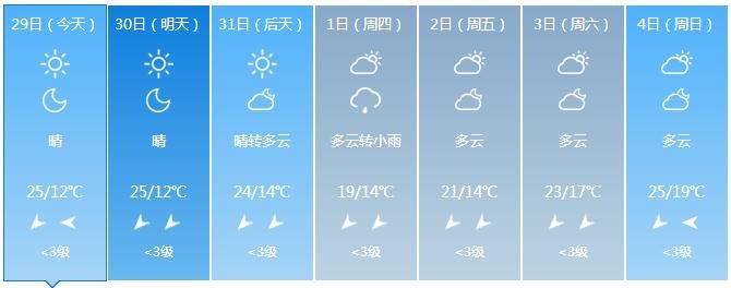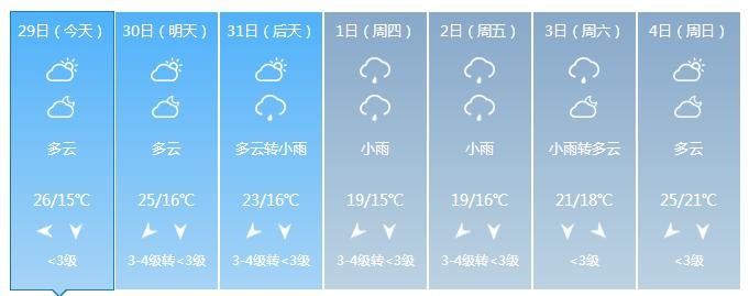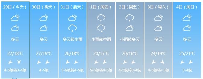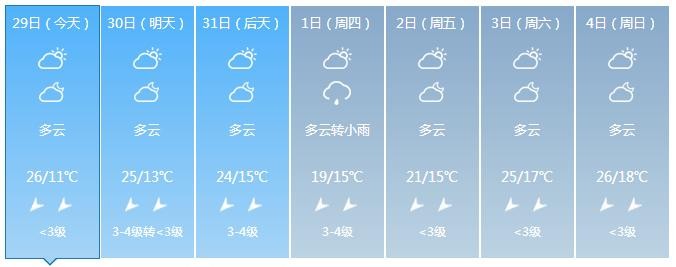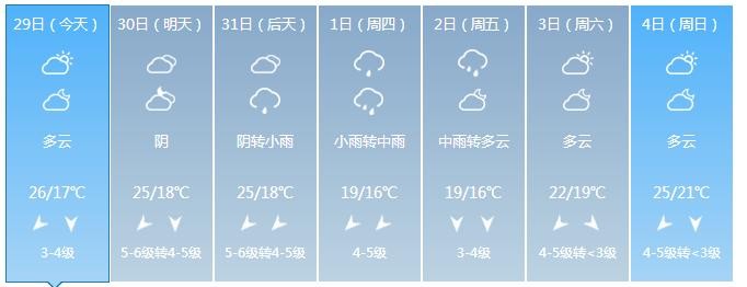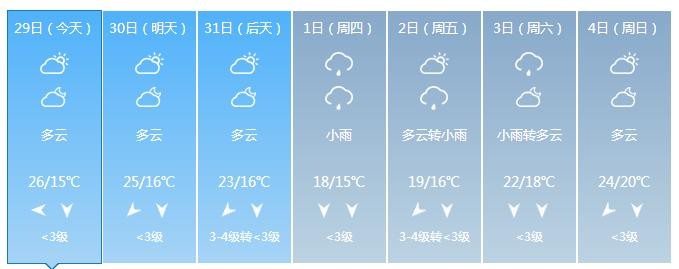 ●30日(周二),受低层东北气流影响,全省多云为主。