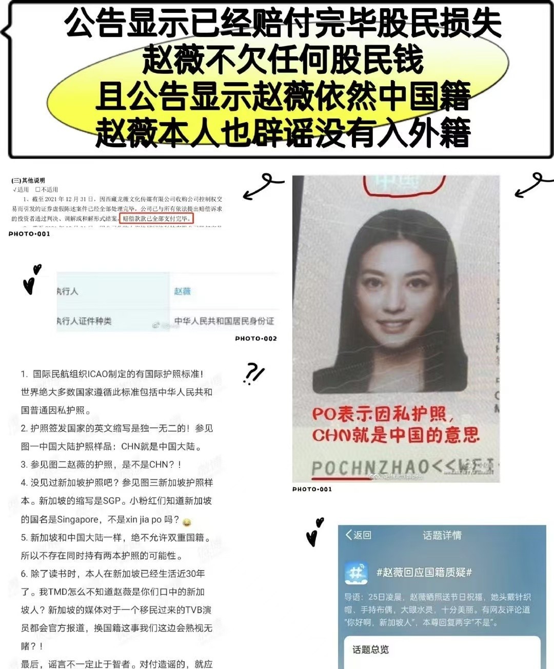 关于赵薇的现状,网友们有很多猜测和传言。有人说她已经移民国外,钱都转移到了国外,还在国外买了一个酒庄。,赵薇的护照曝光后,证明她依然是中国公民,并没有移民。这一事实让网友们对赵薇的忠诚和担当感到敬佩。