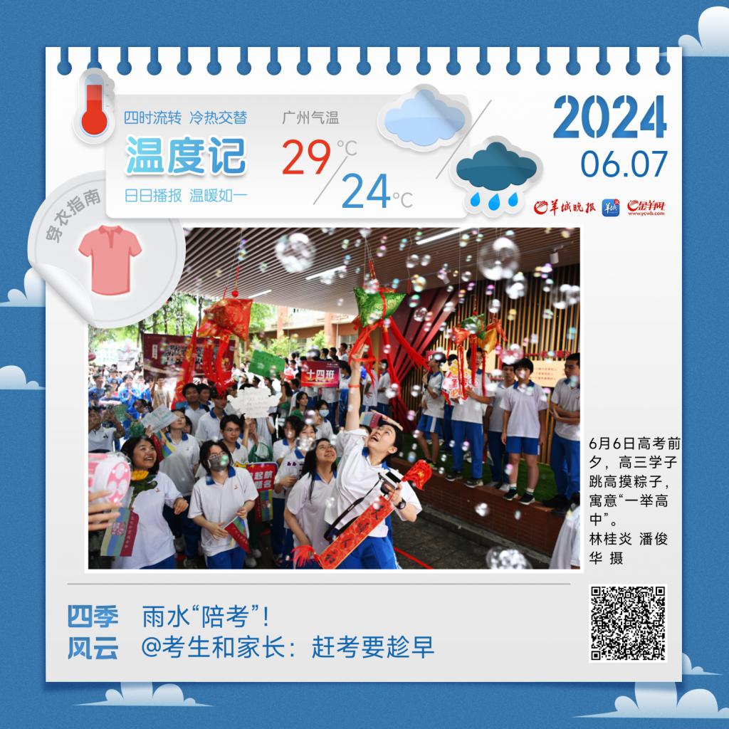 7 日(高考),中雷雨局部大雨,24~29 ℃;