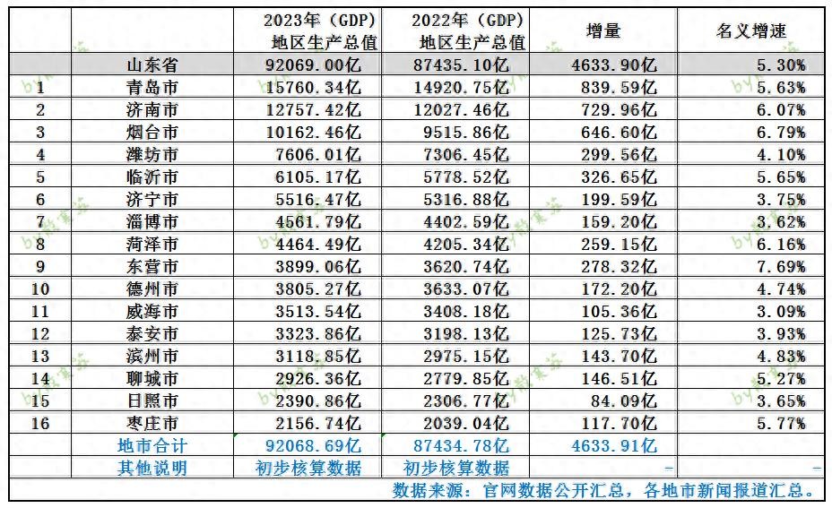 从GDP来看,GDP最高的是青岛市,其次是青岛市,第三是烟台市。GDP最少的是枣庄市。