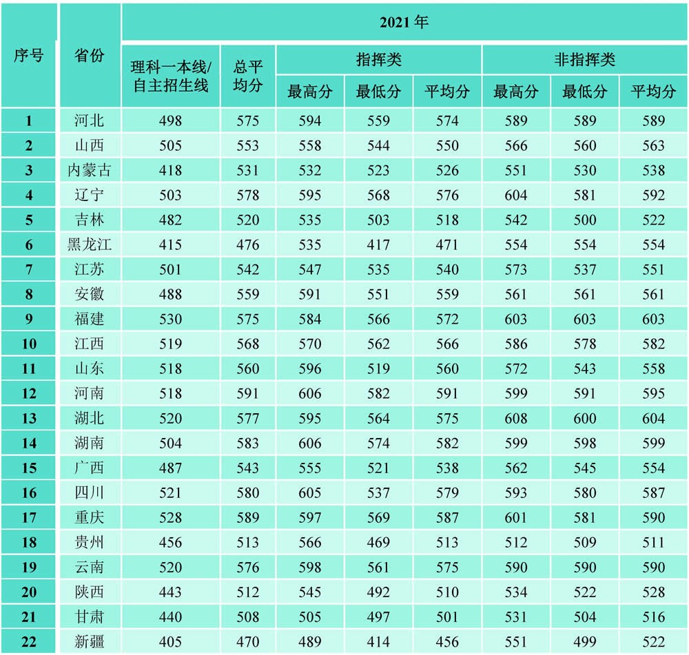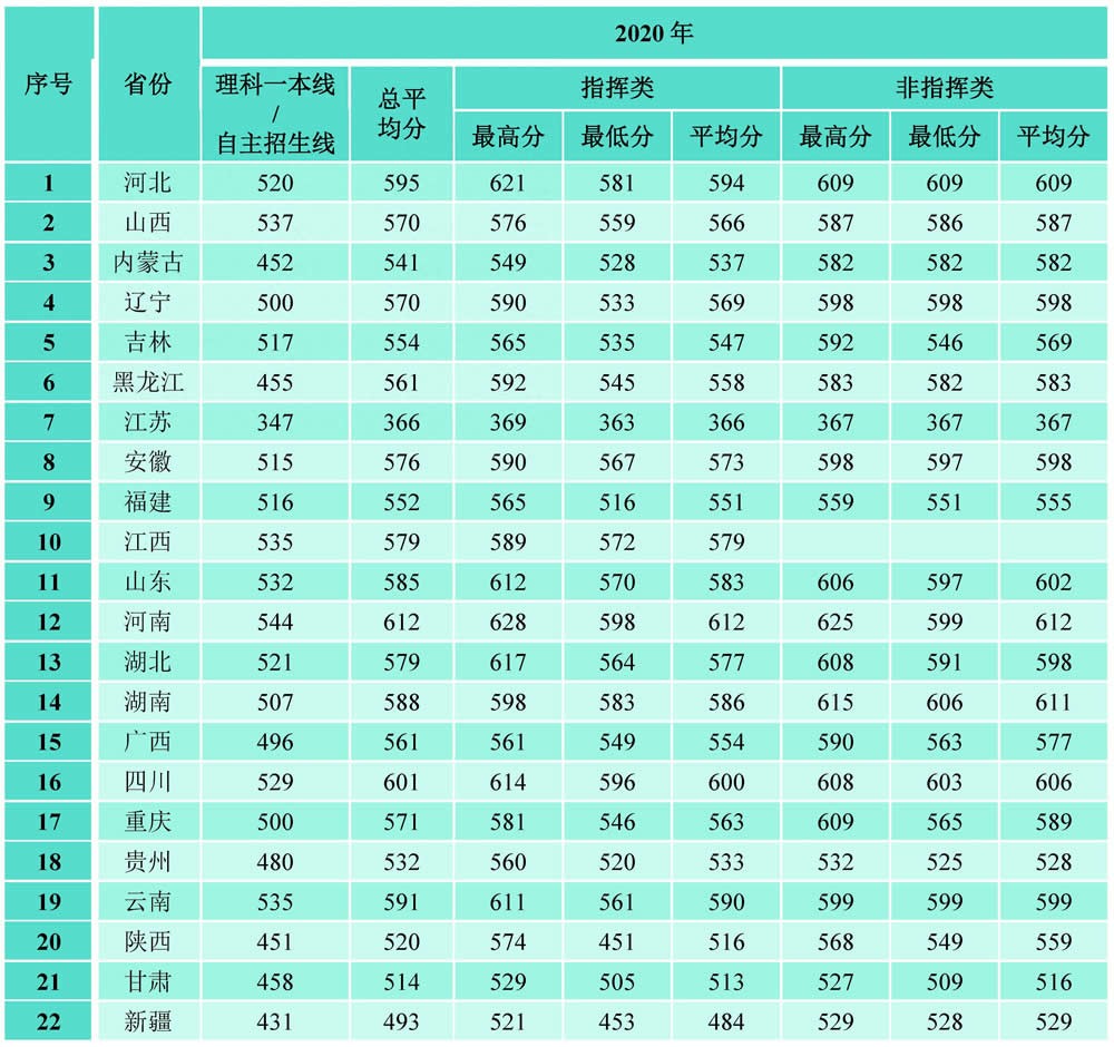 3.如何填报志愿?答:军队院校招生实行提前批次投档录取,在普通高等学校本科第一批次录取工作开始前结束,具体时间由各省教育考试院公布。志愿报考我院的考生,应在填报高考志愿时,按照我院在本省招生计划,填报我院的院校和专业代码。