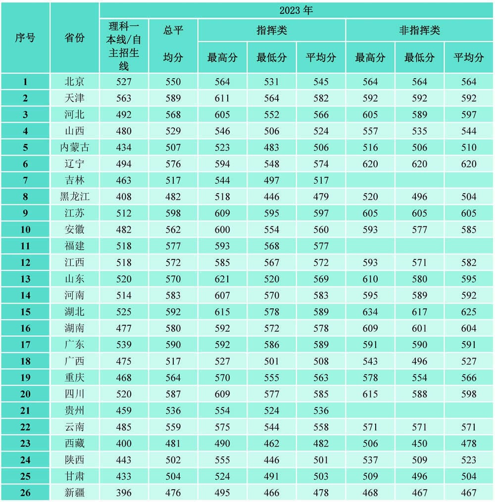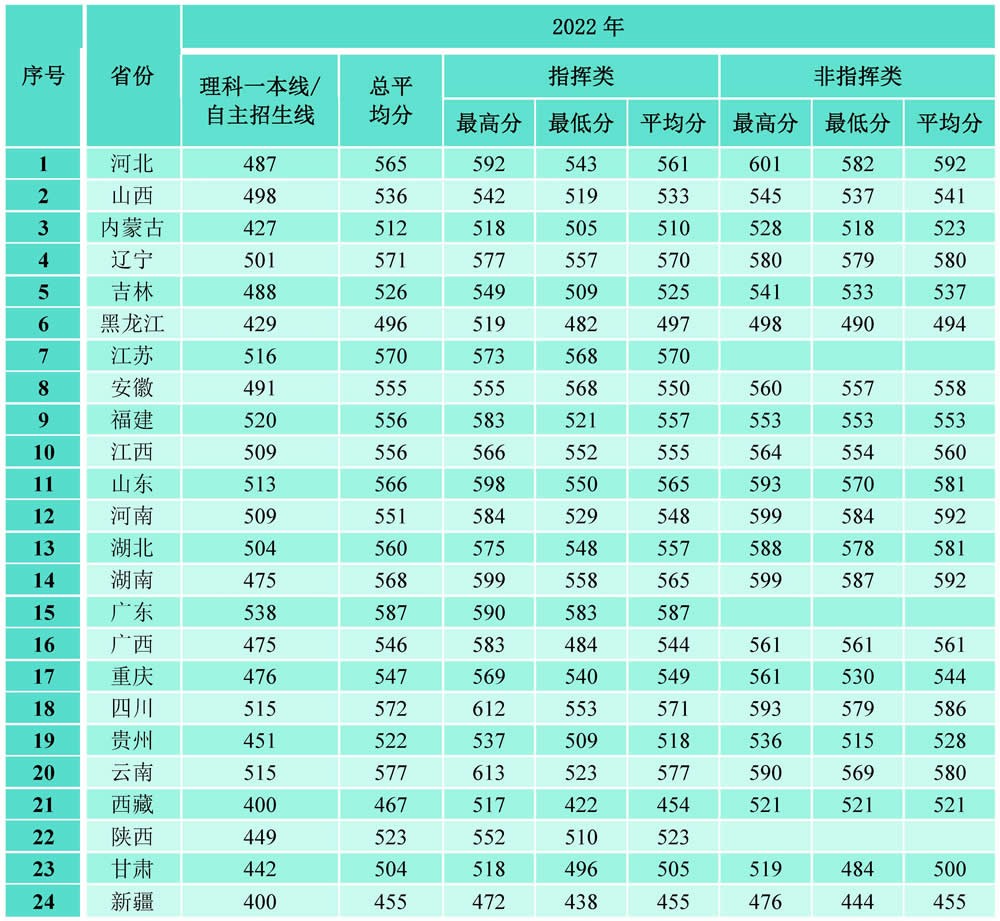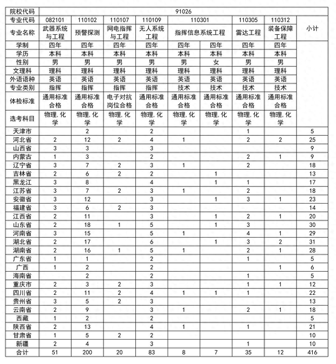 经教育部和中央军委批准,我院2024年面向26个省份(直辖市、自治区)招收7个专业及报考方向共416名理科高中毕业生(含女生7名)。