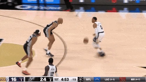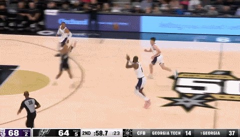 4分50秒,威少扛着炸药包突到篮下,分底角加布里埃尔,加布又分纳恩,纳恩再冲内线,再分加布,后者三分命中!