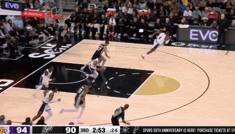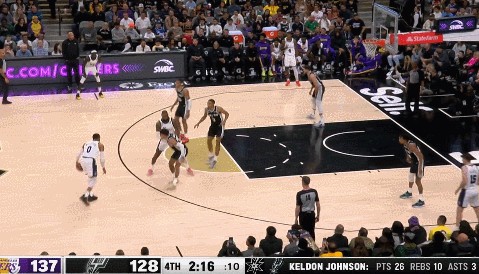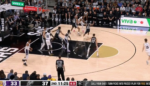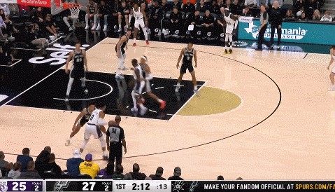 10分15秒,施罗德换下威少。威少在的1分35秒,马刺方面由麦克德莫特和瓦塞尔命中2记三分,湖人被打了一个6-2。