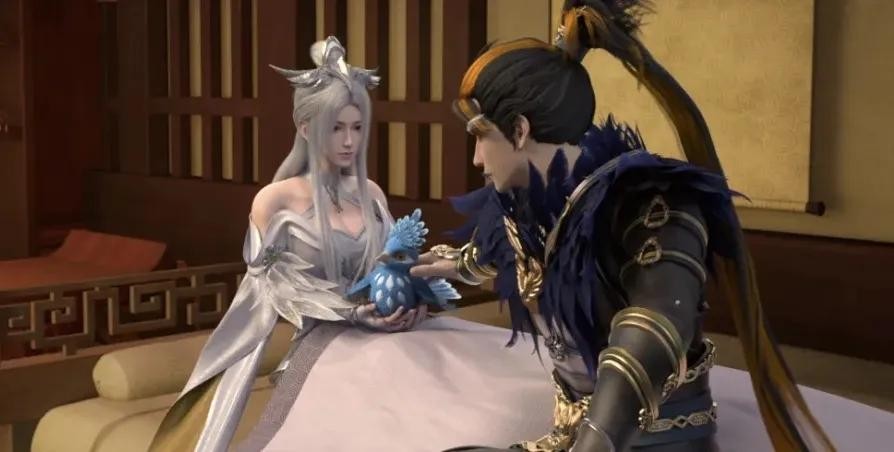 在最新一集之中白灵诞下了一只小蓝鸟,黑羽夫妇身份升级,而这只小蓝鸟就是黑羽和百灵的千金,也是被起名叫黑彤,不过黑彤的本体只是百灵鸟,没有超级神兽的传承记忆,拥有部分当初黑羽的特征。出生姜阑界之中,有着时间加速,也是很快幻化为了人形,也是继承了百灵的颜值,可爱的性格,也是深受秦羽和候费这两位伯伯的喜爱。