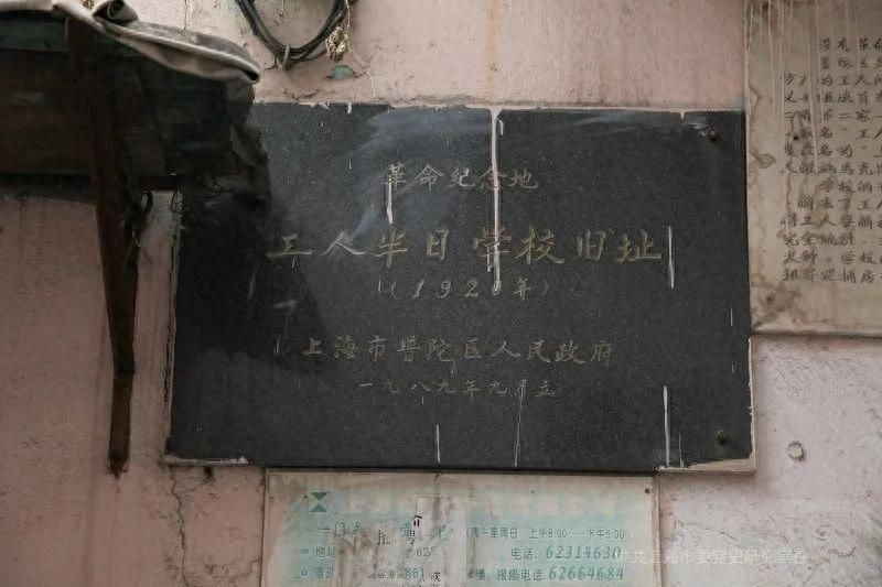 71. 上海工人半日学校旧址。上海工人半日学校旧址位于上海市普陀区安远路62 弄(锦绣里)178—180 号。上海工人半日学校是中国共产党早期组织创办的全国第一所工人学校。1920年秋,中国共产党发起组在上海建立后,为实践马克思主义必须和工人运动相结合的理论,发起组成员李启汉奉命到纱厂集中的沪西小沙渡开办工人学校,对工人进行文化和马克思主义思想教育。