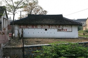 98. 新四军标语墙。新四军标语墙位于上海市青浦区白鹤镇塘湾村。1945年抗战胜利后,中共中央为表示我党谋求和平民主团结的诚意,9月决定让出苏南、浙东8个解放区,命令新四军浙东纵队及地方党政干部(除留下少部分未暴露身份人员)全部撤离浙东根据地,到苏北编入华东野战军第一纵队。至今仅存塘湾村旧青浦镇原土地庙后墙上一条具名新四军宣的标语:“巩固国内团结,保证国内和平!”和原城隍庙围墙上一条标语:“我们要和平,反对内战。”