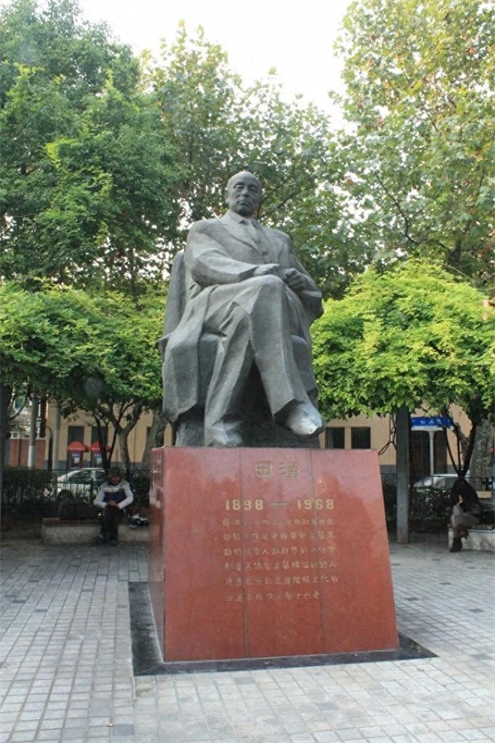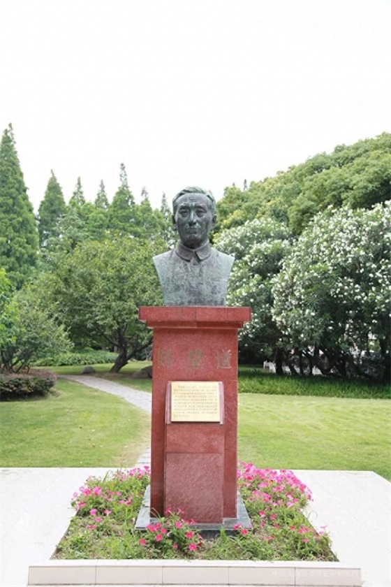 82. 陈望道铜像。陈望道铜像位于上海市邯郸路220号复旦大学校园内。陈望道(1891-1977),浙江义乌人。1915年赴日本留学,1919年5月回国,任杭州浙江省立第一师范学校国文教员。1920年12月起,负责《新青年》的编辑工作。1920年5月,与陈独秀等在上海组织马克思主义研究会,并参与社会主义青年团筹建工作。同年春翻译《共产党宣言》第一个中文全译本。陈望道逝世后,1980年1月23日,中共上海市委组织部根据党中央的指示精神,在上海市革命公墓隆重举行了为陈望道同志骨灰盒覆盖党旗仪式。复旦大学在校园内建立了陈望道铜像。