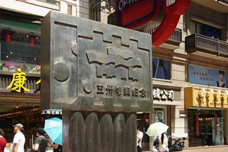 18. 五卅惨案烈士流血处。五卅运动爱国群众流血牺牲地点原为公共租界老闸捕房旧址正面。民国十四年(1925)5月30日上午,上海二千余学生为声援日商棉纺厂内的工人斗争,抗议日本纱厂资本家枪杀工人顾正红,在南京路举行示威、演讲。公共租界巡捕房逮捕演讲学生和听讲群众,激起民众愤慨。下午三时,群众几千人聚集在老闸捕房门前要求释放被捕者。英国巡捕竟开枪射击,当场死伤数十人,鲜血洒在南京路上,酿成“五卅惨案”。1977年12月7日,由上海市革命委员会公布为上海市纪念地点。1985年5月29日,上海市文物管理委员会在南京东路772号门前墙上勒石纪念,上嵌“五卅惨案烈士流血处”。