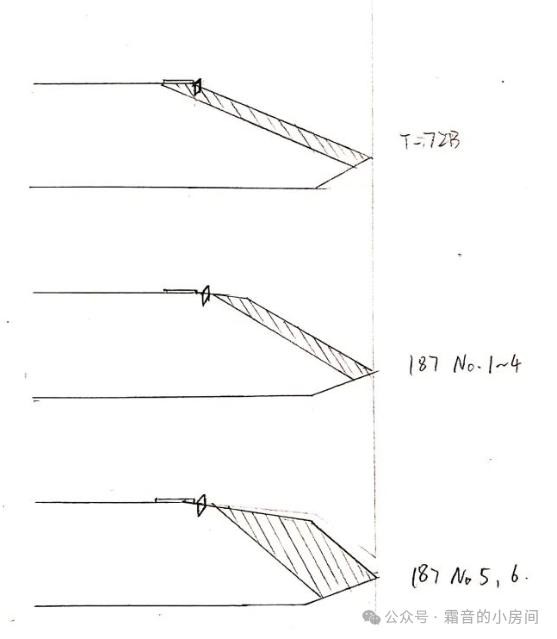 ▲T-72B及187工程各阶段的复合装甲示意图