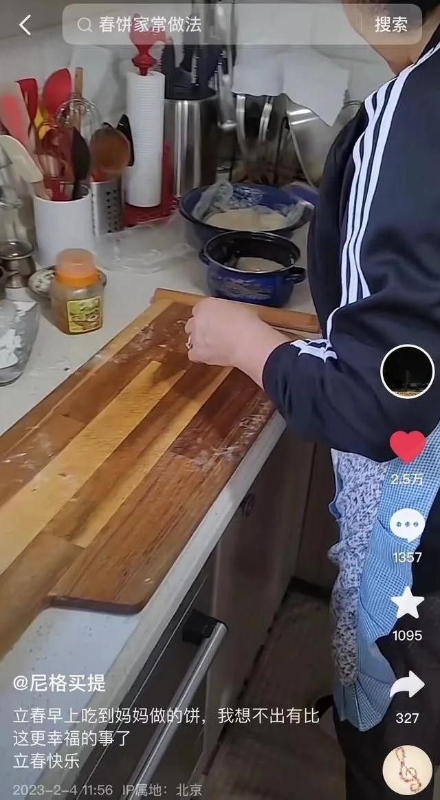 视频中,尼格买提的母亲正在为他做新疆的特色美食千层饼,他的视频文案是,能够吃到妈妈做的饼简直是世界上最幸福的事情,十分的温馨。