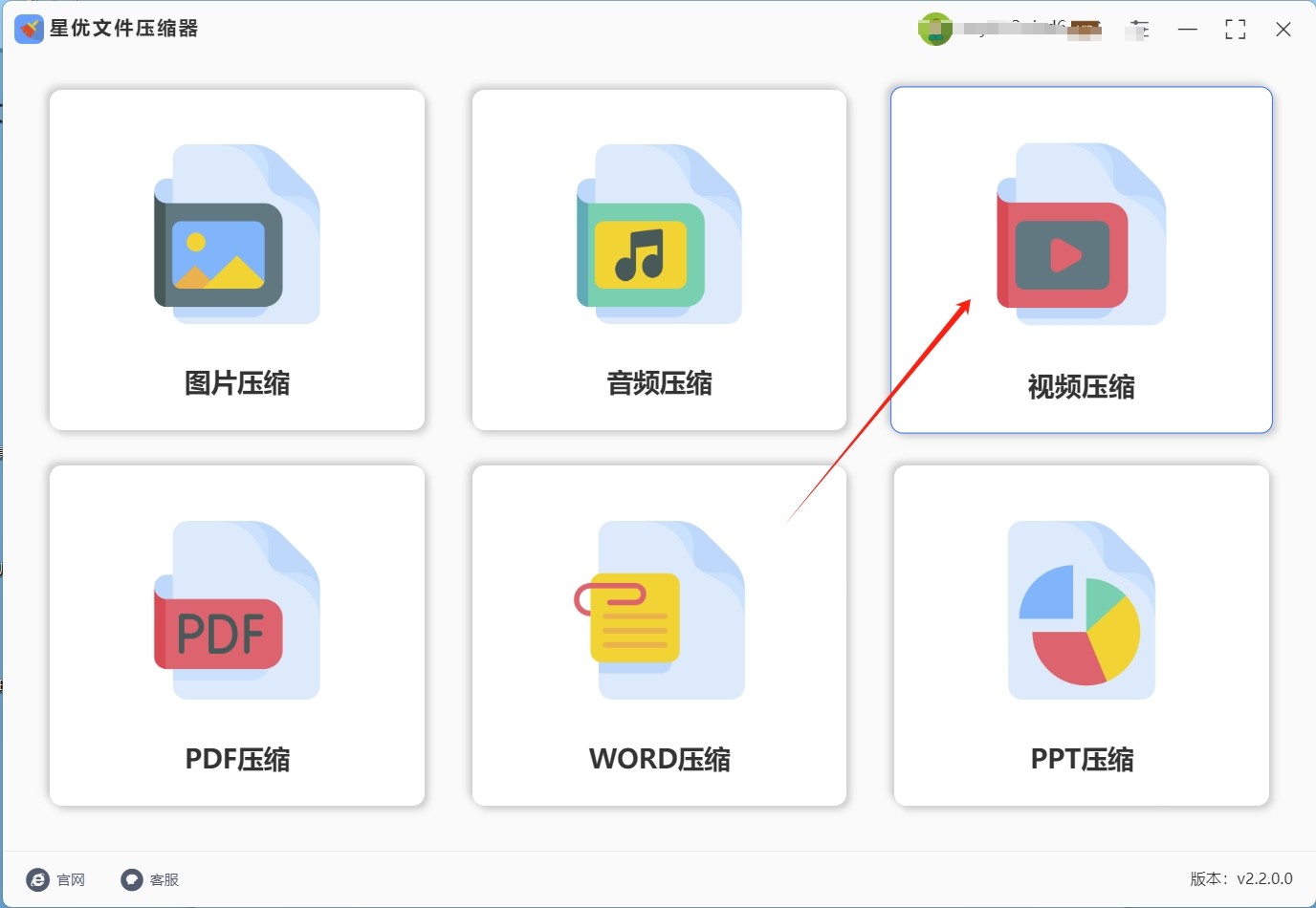 步骤一,等确保你已经成功下载并安装了【星优文件压缩器】软件。安装完成后,双击图标启动软件。在软件的主界面,选择【视频压缩】功能,这是视频文件压缩的入口。