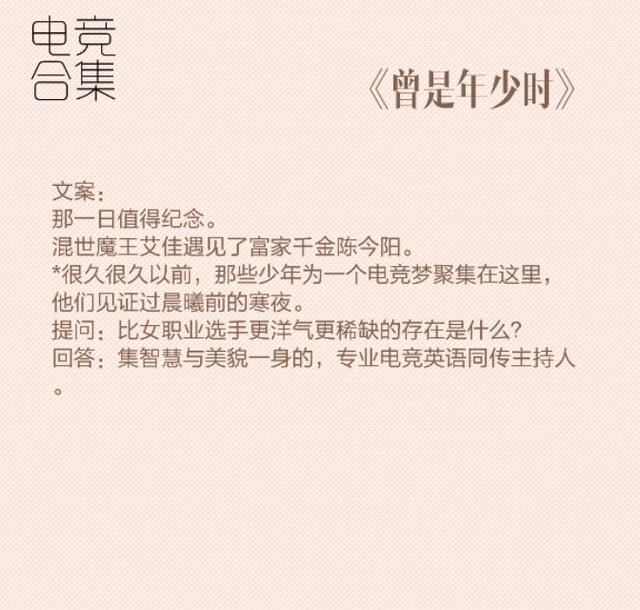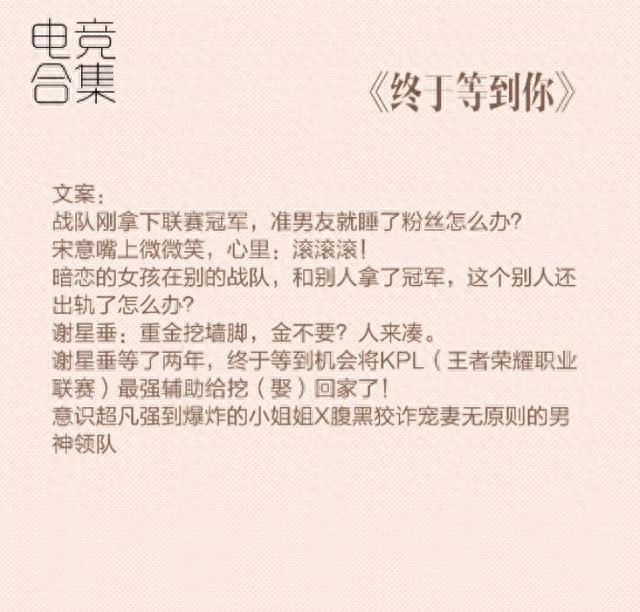 去年看完《亲爱的热爱的》和《陪你到世界之巅》,对电竞男主各种喜欢,就去找了好多本电竞文看,然后一发不可收拾,追梦又追妻啥的太对口味了啊(//∇//)~