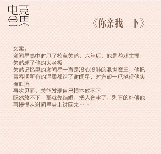 看了很多电竞文,还有超多优秀的咕噜下次再整理,上面的六本都还很不错哦,没看过的小可爱一定要去看看呀\(๑• . •๑)/