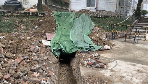 发现古墓的位置位于学校文学院附近的一个施工现场,记者在现场看到,这里已经停止施工,打围保护了起来。在一旁,学校还安排了工作人员进行值守,期间有不少校内的学生闻讯前来围观。