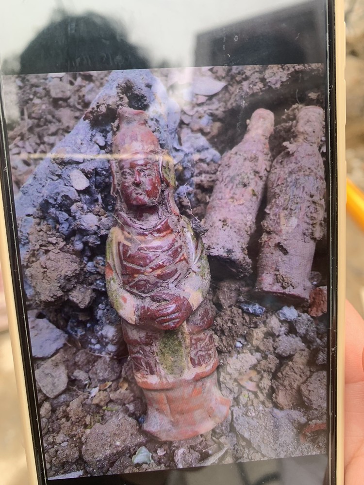 现场工作人员告诉记者,这里原本正在进行地下管道的施工作业,在前几天挖掘到了疑似古墓的物品。3月19日,成都市锦江区文旅局来到现场进行了勘查,确认这里发现了宋代墓葬的部分出土文物。根据文物保护的有关规定,文旅局责令施工单位立即停止了施工,等待下一步的考古发掘。